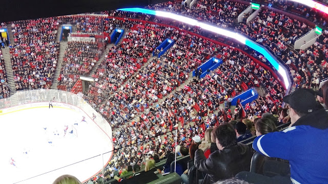 We decided while we were in canada we had to go to a hockey game, in the Bell Centre. The game was between the Montreal Canadians and ... The atmosphere in the arena was amazing